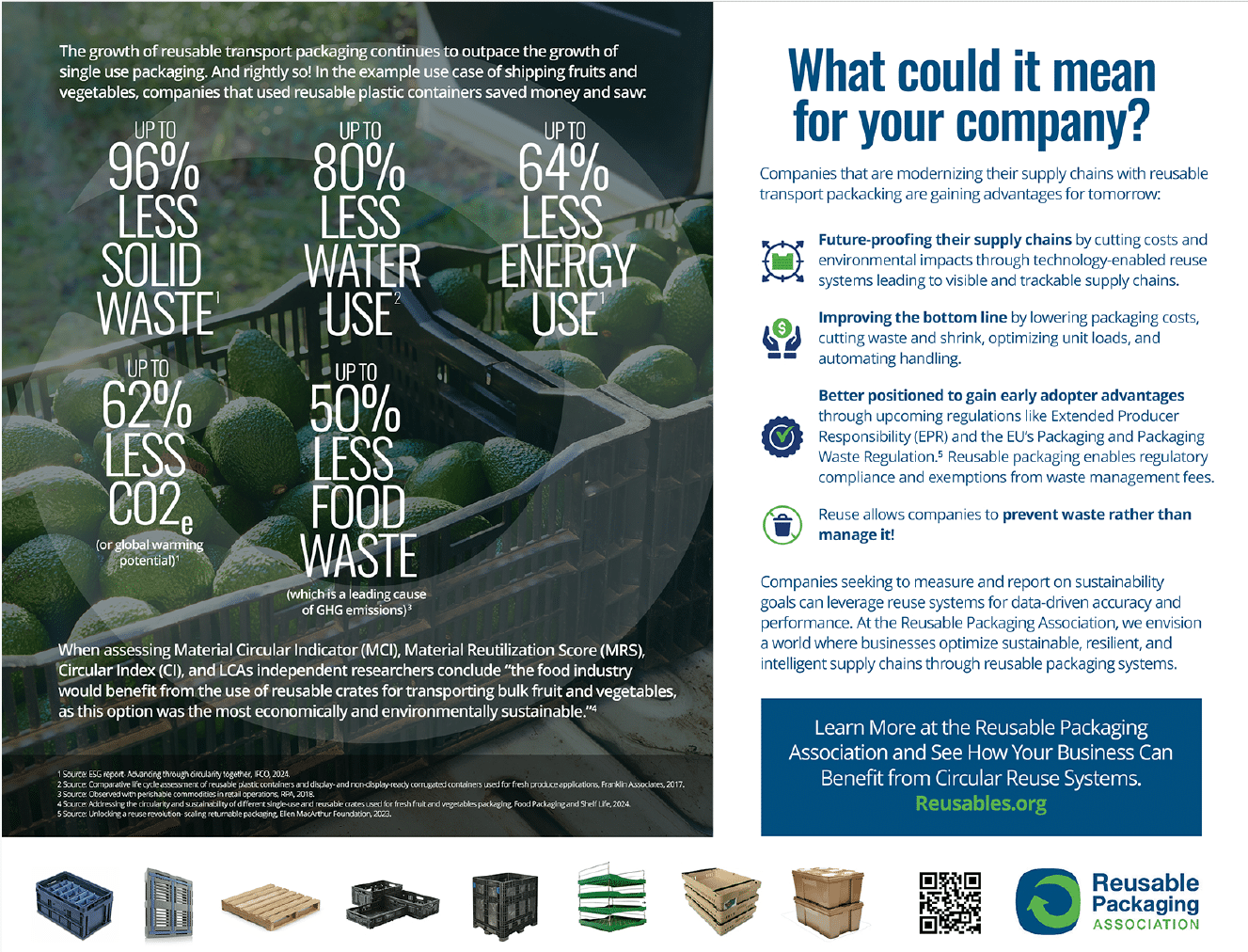 Content hosted by RPA’s Sustainability Working Group (SWG). The SWG is dedicated to advancing the principles of environmental stewardship, natural resource conservation, and social impact within the realm of reusable transport packaging systems. Committed to driving positive change, this committee aims to foster collaboration, education, and best practices that contribute to a more sustainable and resilient future for the reusable packaging industry and those adopting and optimizing reusable packaging for their supply chains.